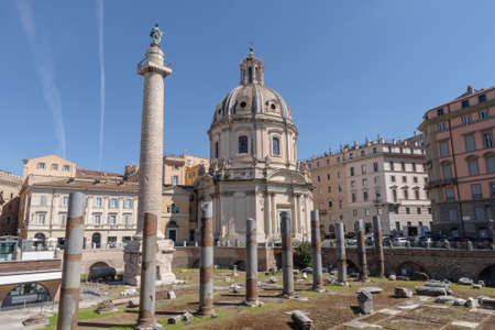 View of the Trajan's column and SS. Nome di Maria church, Rome