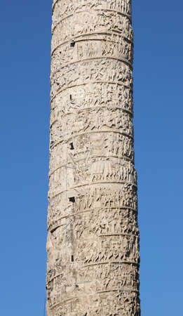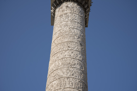 detail of Column of Marcus Aurelius in Rome Italy and blue sky