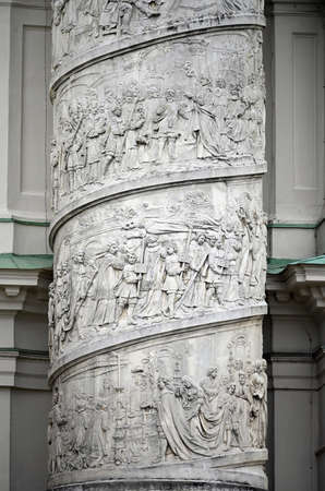 Top of column with bas-reliefs of Karlskirche, Charles Church, in Vienna, Austria