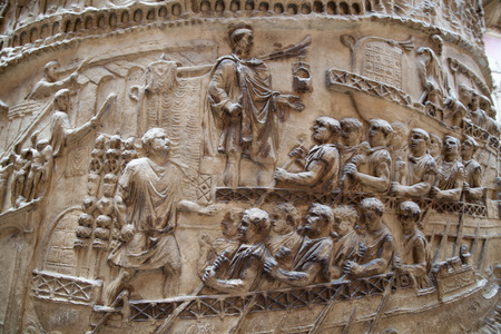 Detail of the Roman triumphal column of Trajan built in the year 107 AD