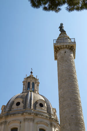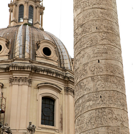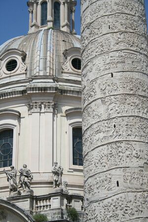 details of Traian column and Santa Maria di Loreto in Rome, Italy