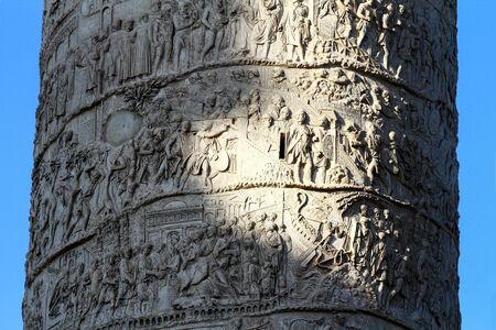 Details of the bas-relief of the Trajan column in Piazza Venezia, Rome. Blue sky background