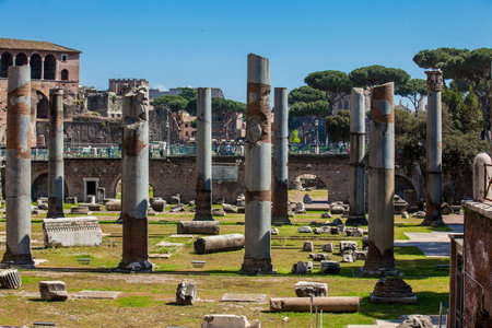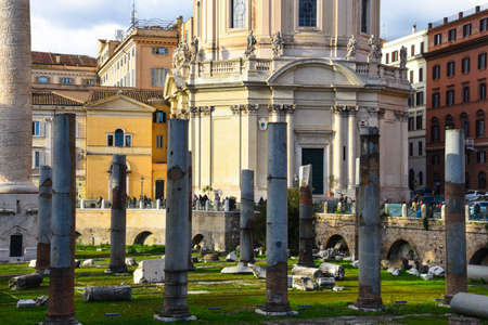 ROME, ITALY - APRIL 8, 2016: Emperor Trajan Forum 106 - 112 AD AD, measuring 300 metres (980 feet) long and 185 metres (607 feet) wide