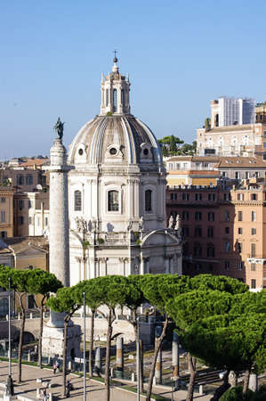 Dome of the church Holy Name of Mary and of Trajan's Column in Rome, Italy