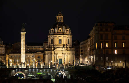 Church of the Most Holy Name of Mary and Trajan's Column at the Trajan Forum, Rome. Evening