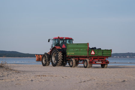 SWINOUJSCIE, WEST POMERANIAN - POLAND - 2022: Tractor of sea beach cleaning crew