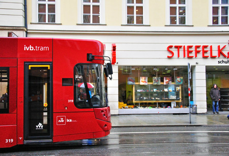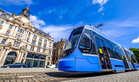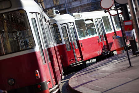 Tram in Vienna Austria. Camera angle view.