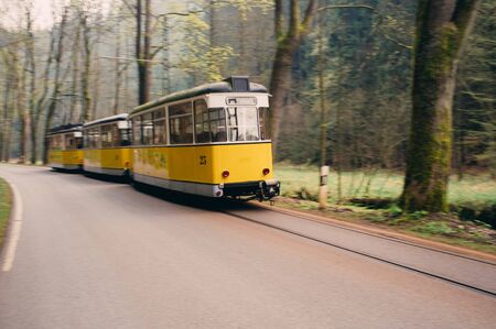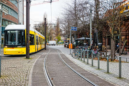 Berlin, Germany - December, 2019: Yellow tram in Berlin.