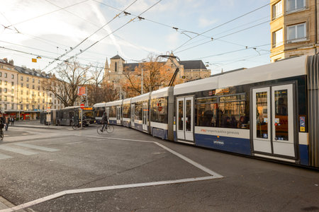 tram circulating in the city of Zurich in Switzerland on November 19, 2019