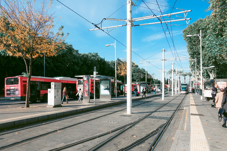 SEVILLA, SPAIN - January 13, 2018: tramway in Sevilla, Spain
