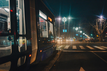 Belgrade, Serbia - January 22, 2026: Belgrade tram on the streets of the city center, at night.