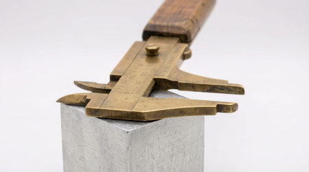 Image shows a close-up of a vernier caliper used for precise measurements in engineering