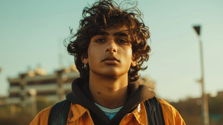 Teen Indian Man with Brown Curly Hair 1990s style Illustration.