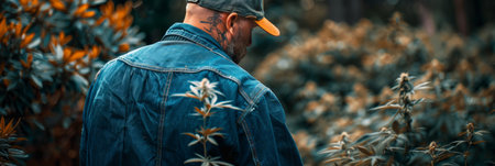 man in a blue jacket and hat stands amidst a colorful field of vibrant flowers, blending in perfectly with natures beauty.