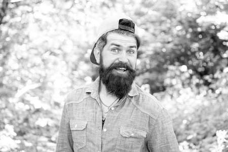 The best in male. male facial care. brutal man with beard. barber. hispter style. Fashion portrait of man. Hair beard care. guy in forest. summer camping. happy bearded man. Mature hipster with beard