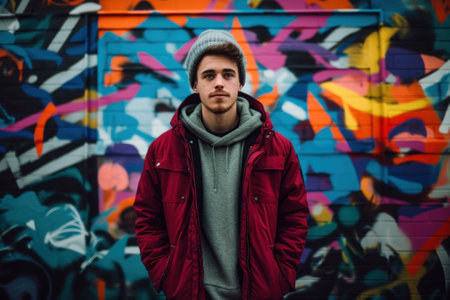 A man standing in front of a graffiti covered wall. Generative AI image.