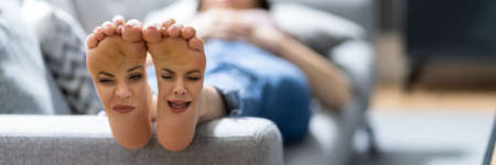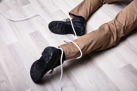 Wire Cord Trip Over And Fall. Feet Stumble On Cable