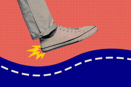 Collage 3d image of pinup pop retro sketch of leg wear gumshoes walking step road highway billboard comics zine minimal concept