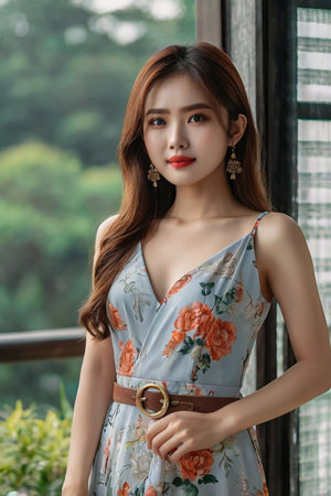 Portrait of a beautiful asian woman in summer dress, vintage tone
