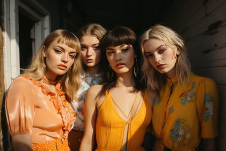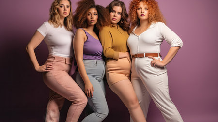 Models of different size and nation posing together, beautiful. People, fashion concept