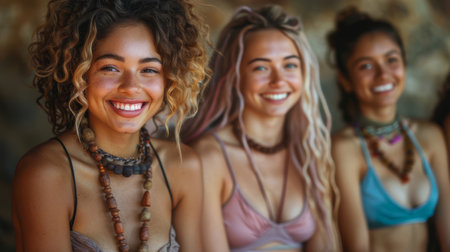 Diverse group of confident women standing side by side, showcasing different beauty and ethnic backgrounds. Unity and empowerment concept.