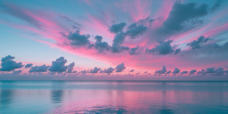 AI Generated. Dramatic Pink and Blue Sunset Over a Calm Ocean