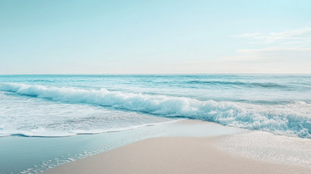 A picturesque beach scene showcasing gentle waves lapping at soft sandy shores under a tranquil sky. Ideal for conveying relaxation and natural beauty.