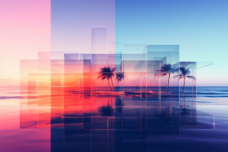 an abstract image of a tropical island with palm trees