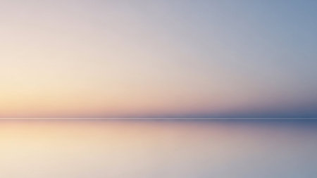 A serene horizon divides a calm body of water reflecting a soft pastel gradient sky at dawn or dusk.