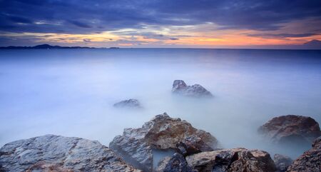 Rock in the sea with long exposure shooting