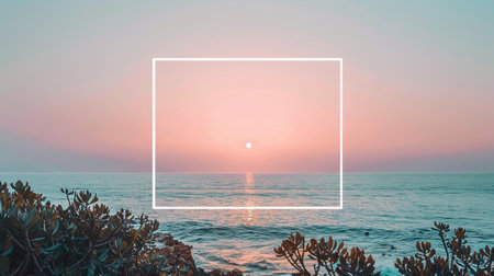 With showing serene ocean horizon at sunrise with soft pink and teal sky and gentle waves reflecting light.