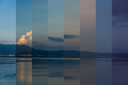 the warmth of sunrise and sunset hues, transitioning seamlessly to the cool tones of midday. Discover the artful use of subtle gradients, evoking a sense of wonder in every phase of the day.