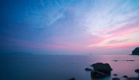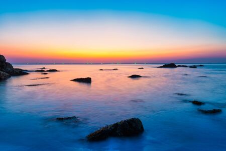 beautiful sunset over the sea, long exposure photo, long exposure