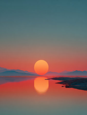 Stunning display of calm waters reflecting gradient skies at various times of day. The serene hues create a peaceful ambiance, perfect for relaxation or inspiration.
