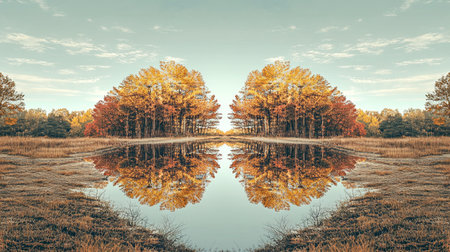 Reflection of autumn trees in the lake. Vintage retro style.