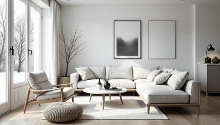 Modern living room interior with a picture on the wall. 3d rendering mock up