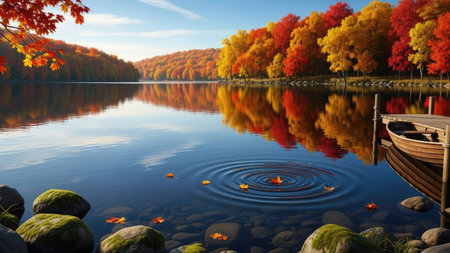 Tranquil lake reflecting the vibrant colors of autumn foliage, creating a picturesque scene of nature's beauty