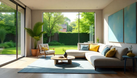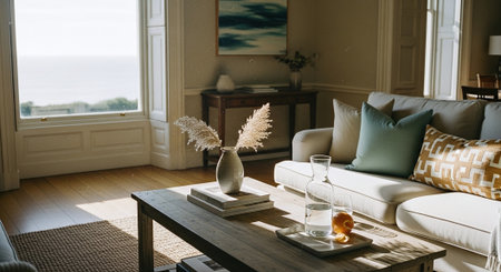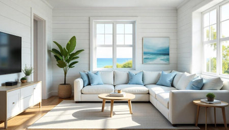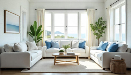 Coastal living room design with ocean view and natural light