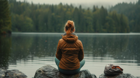 A masterful photograph depicts a person sitting in profound meditation in the heart of a tranquil wilderness Every intricate detail of nature from the delicate ripple of a nearby lake to the vibrant hues of foliage comes to life embracing the essence of mindfulness and connection to nature within the frame capture the profound stillness the gentle whispers of leaves and the tranquil aura that encapsulates the scene inviting viewers into a moment of peaceful introspection Let the photograph inspire a deep sense of calm unlocking the power of mindfulness and promoting mental wellbeing