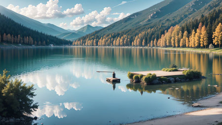 AI Generated. Tranquil lakeside serenity under a clear sky