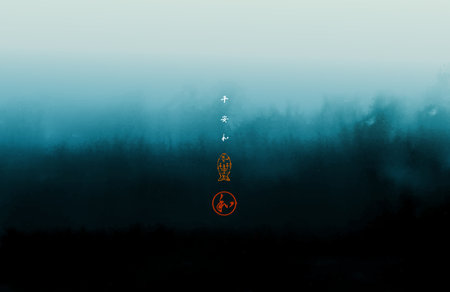Abstract blue ink wash painting in japanese style. Traditional Japanese ink wash painting sumi-e. Hieroglyphs - peace, tranquility, harmony.