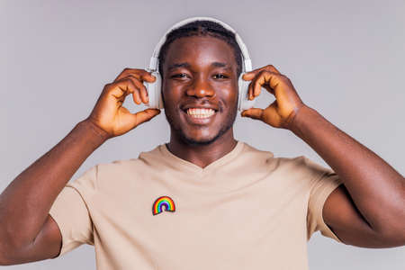 Image of a handsome young man posing on colored backgrounds wearing colorful trendy clothes. Concept about carefree, fashion and lifestyle