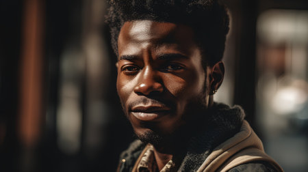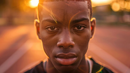 The close up picture of the african american basketball player man is standing inside basketball court and looking at camera, basketball require skill physical fitness, teamwork and technique. AIG43.