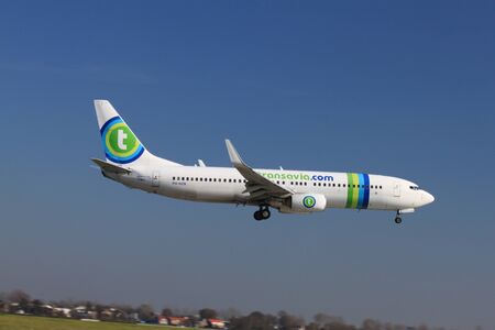 Boeing 737 of Transavia is landing on Rotterdam Airport in the Netherlands