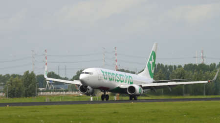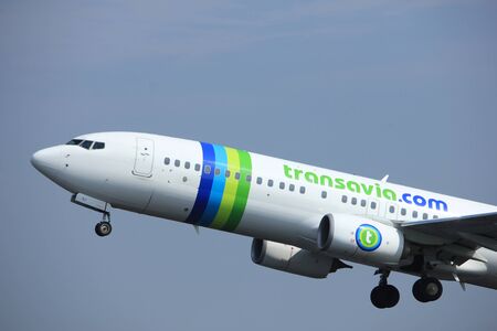Amsterdam the Netherlands - May 6th, 2017: PH-HSJ Transavia Boeing 737 takeoff from Polderbaan runway, Amsterdam Schiphol Airport