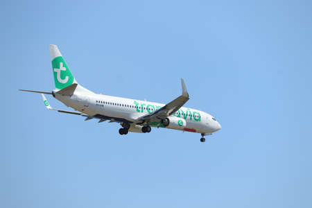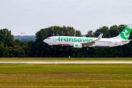Budapest Hungary Jul 14 2019: Transavia Airline Boeing 737 F-HTVE just landing in Budapest International airport.