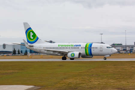 Katowice, Poland - May 5, 2017: Transavia plane parking at Katowice Intrenational airport in Poland