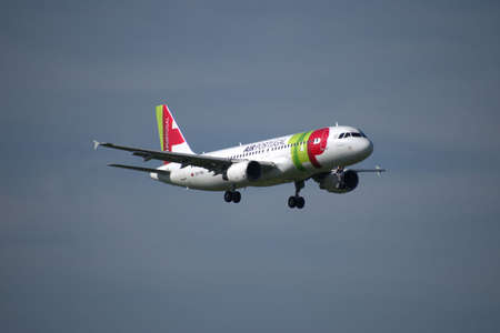 TAP Air Portugal A 320-214 aircraft on the final approach the the international airport in Zurich in Switzerland 24.4.2021