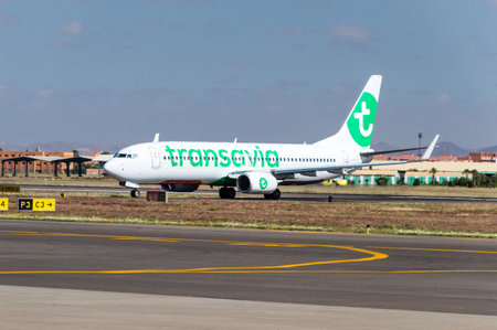 Marrakech, Morocco - June 6, 2018: Plane Boeing 737 of Transavia at Marrakesh Menara Airport (RAK).
