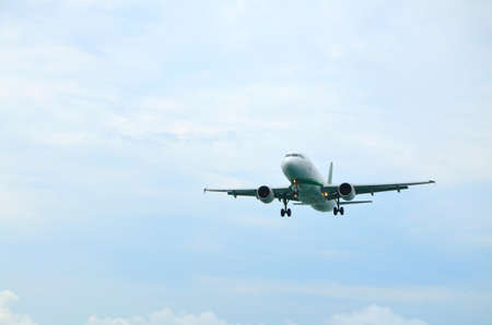 PHUKET, THAILAND - MARCH 26, 2018: Spring Airlines Airbus A320 B-8873 landing on blue sky at Phuket International Airport